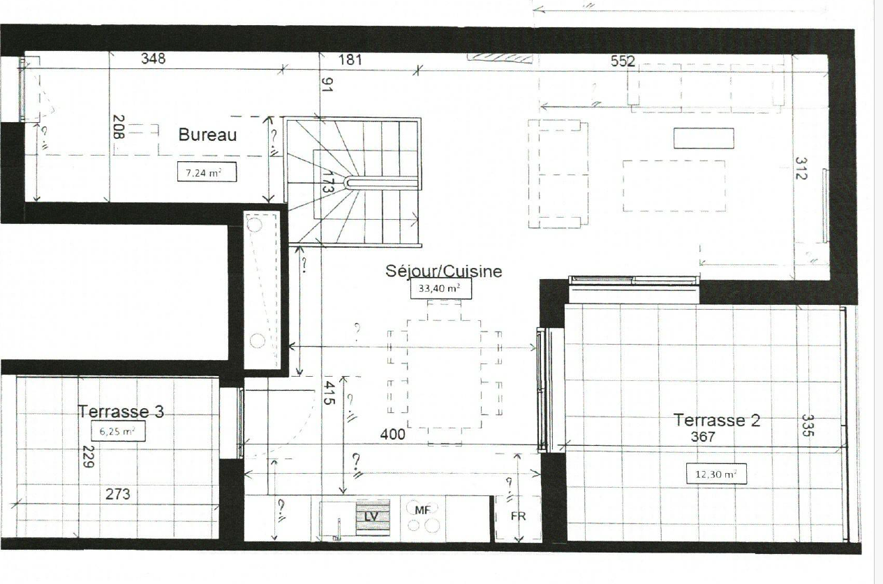 T4 bis en duplex dernier étage avec terrasse. Situé boulevard Alain Savary face au parc, nous vous proposons ce T4 bis de 104 m² en duplex avec 3 terrasses et 2 places de parking boxables au dernier étage d’une résidence de 2020. Il se compose au rez de chaussée de 3 chambres avec placards, d’une salle d’eau et wc séparé et une première terrasse donnant sur le parc. A l’étage un grand salon sejour cuisine avec 2 terrasses et un espace bureau. Vous serez séduit par sa luminosité, son confort et la vue dégagée depuis les terrasses. Vous êtes proche du tramway ligne T1, du lycée Saint Exupery et des commerces. Aucuns travaux à prévoir ! Composition de l’appartement : Au rez de chaussée : Une entrée de 5 m² avec placards. Une chambre de 13.5 m² avec placards donnant sur une terrasse. Une chambre de 12 m² donnant sur la terrasse. Une chambre de 10 m² transformée en dressing. Une salle d’eau de 5 m² avec douche à l’Italienne et un meuble double vasque. Une buanderie de 1.5 m². Un wc séparé de 1.5 m². Une terrasse de 10.5 m² en bois avec vue sur le parc. Au premier étage : Un salon séjour cuisine de 30 m² donnant sur 2 terrasses. Cuisine meublée et équipée du four, plaques, hotte aspirante et lave-vaisselle. Un espace bureau de 7 m². Une terrasse de 12 m² donnant sur le parc. Une terrasse de 6 m². Prestations : Vous disposez de 2 places de parking sécurisées et en sous-sol côte à côte. Elles peuvent se transformer en garage. Un garage à vélo. Menuiserie en double vitrage avec volet roulant électrique. Chaudière à condensation. Informations pratiques : Classement DPE en C faible consommation énergétique. Taxe foncière de 2265€/an. Charges de copropriété de 134€/mois eau comprise. Pour plus de renseignement veuillez contacter l’agence.