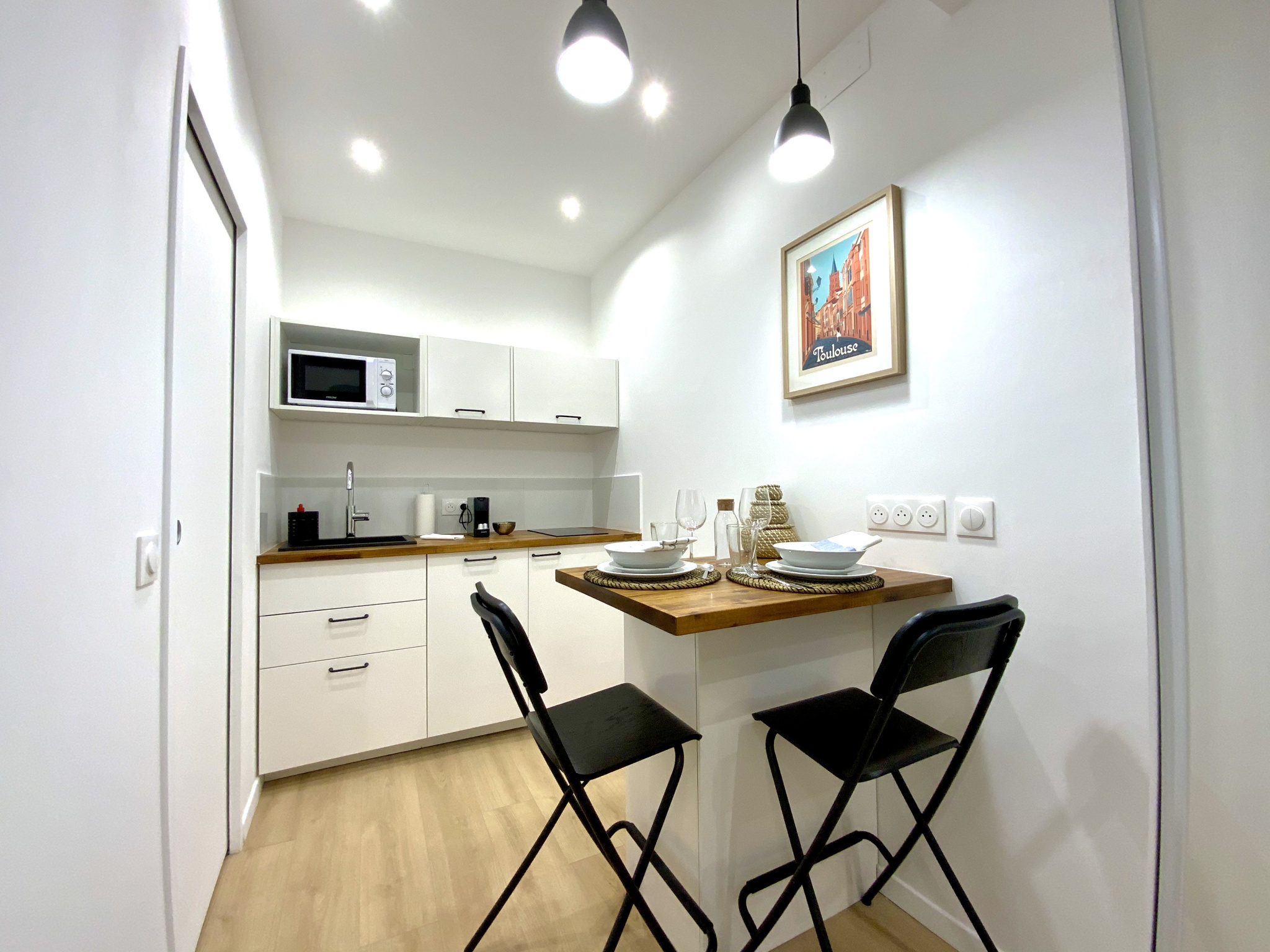 Studio Meublé de 21 m² à Victor Hugo. Face à Victor Hugo, situé au 1 rue Lafaille dans un immeuble rénové, nous vous proposons ce studio meublé de 21 m² avec la double destination (bureau et habitation) permettant la location meublée courte durée ( AIRBNB) et en meublé. Vous êtes au calme au 1 er étage sur 3 du côté de la cour intérieure. Vous êtes à 2 minutes à pied de la station de métro Jean Jaurés (ligne A et B), des commerces et restaurants. Vous apprécierez son emplacement, sa luminosité et son calme. Idéal investisseur ou bien pour loger son enfant étudiant ! Il est vendu avec l’ensemble du mobilier et libre de toute occupation. Pendant des années il à été loué avec AIRBNB. (Règlement de copro ok). Composition du studio : Une pièce de vie 18 m² avec entrée et placards. Un espace nuit avec un lit en 160cm. Un coin repas avec table et chaises. Une cuisine équipée avec plaque à induction, four micro-onde et frigo. La salle d‘eau de 3 m² avec douche à l’italienne, un meuble vasque, un miroir et le wc. Informations pratiques : Pas de travaux dans la copropriété. Charges de copro 54€/mois eau comprise. Classement DPE en D avec un consommation électrique de 60€ mois. Taxe foncière 597€/an Double destination. Confrères et consœurs inter agence possible. Pour plus de renseignement veuillez contacter Benoit Lannes.