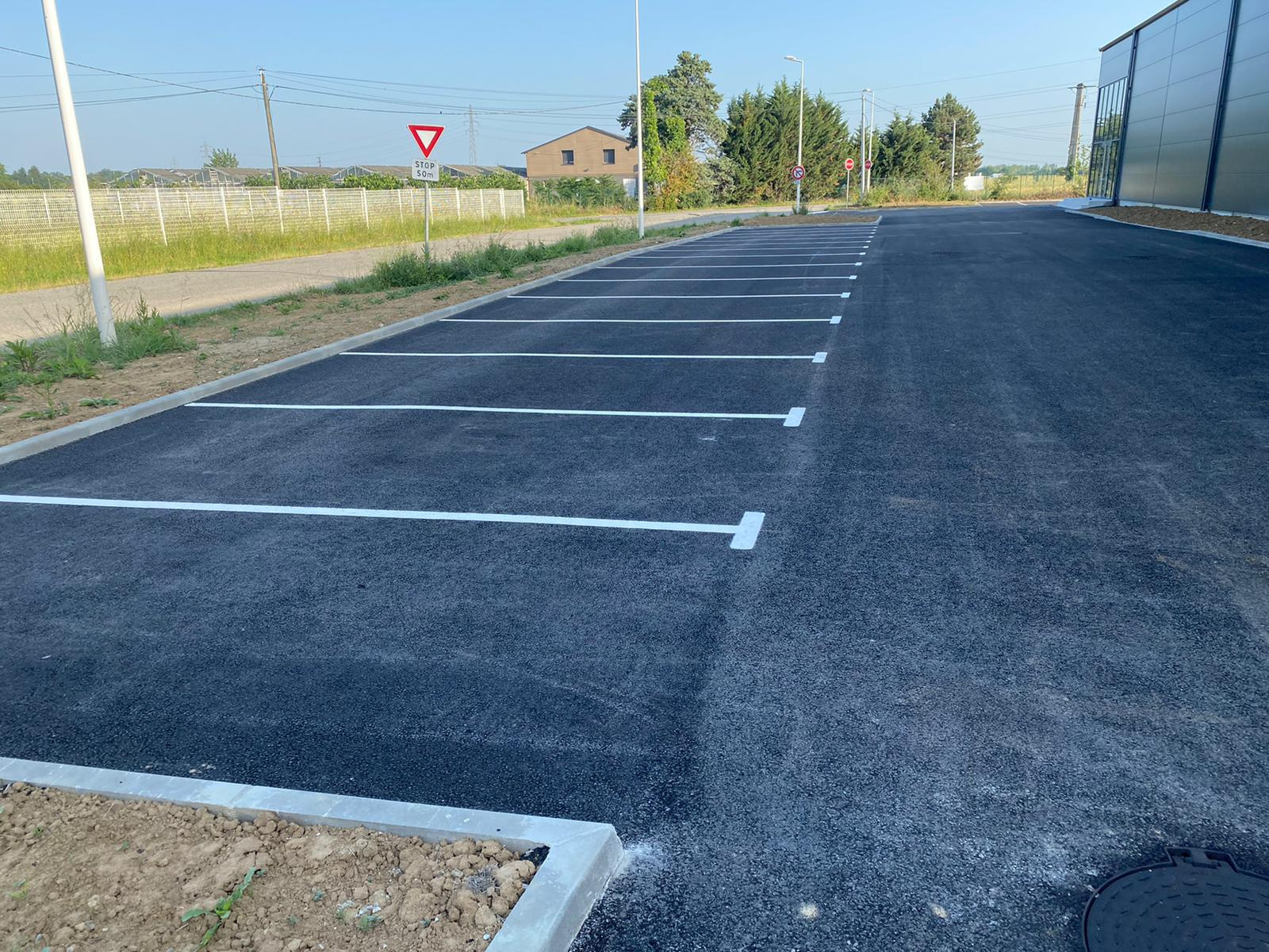 - 22 places de parking goudronnées avec marquage au sol, dont une PMR.