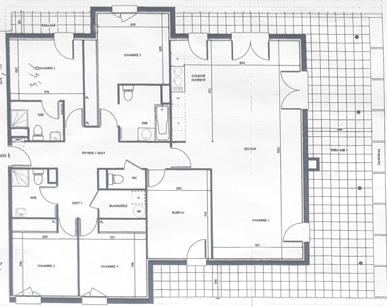 - Chambre 2 15m² avec salle de bain/toilettes 5m²