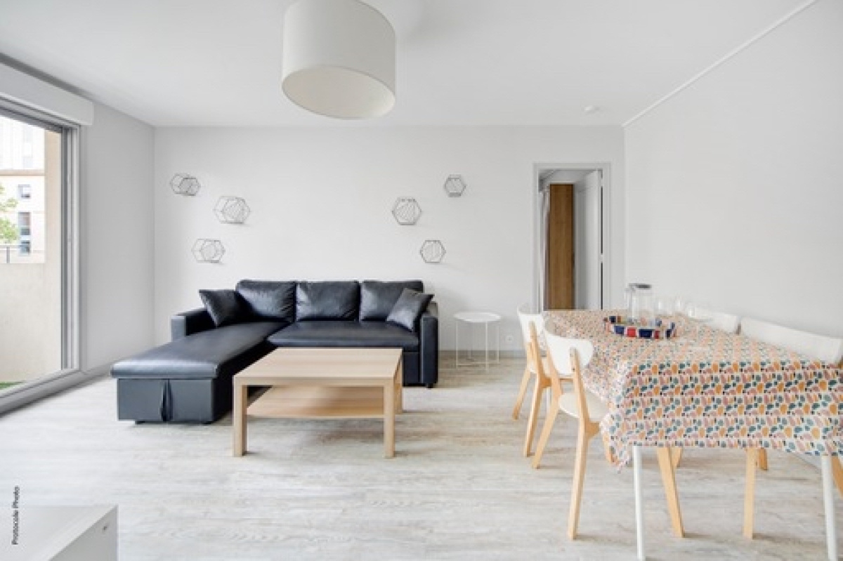 Il se compose d'un séjour et d'une cuisine séparée donnant tous les deux sur la terrasse. Il y a une possibilité d'ouvrir la cuisine pour venir agrandir la surface de vie du séjour. Un large couloir d'entrée avec un grand placard donne accès à la chambre, la salle de bains et au WC séparé.