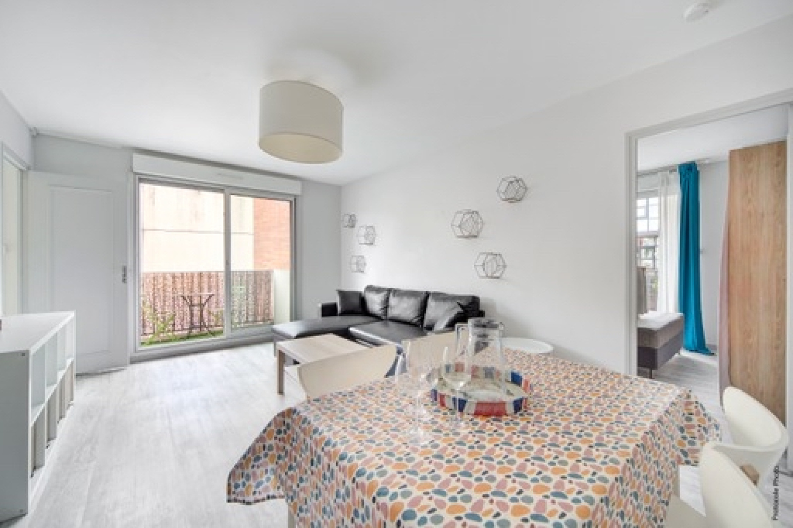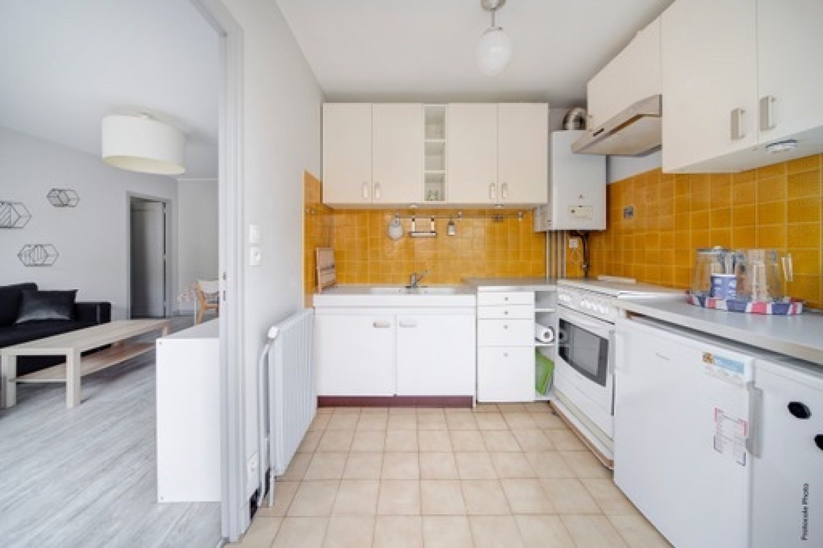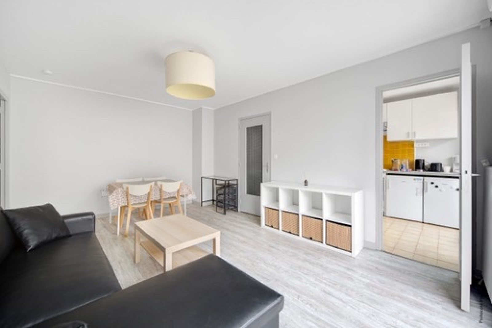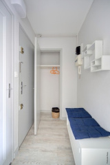 une grande entrée avec placard dessert la pièce de vie de 17 m2 puis la cuisine séparée de presque 6 m2, les deux pièces donnent sur un balcon sans vis à vis et à l'arrière du boulevard.