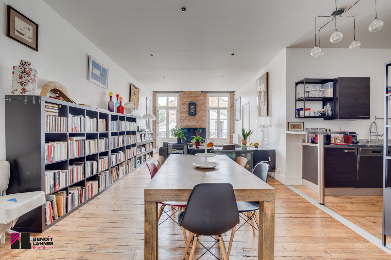 Charme de l'ancien: la belle hauteur sous-plafond, les parquets et la brique toulousaine;