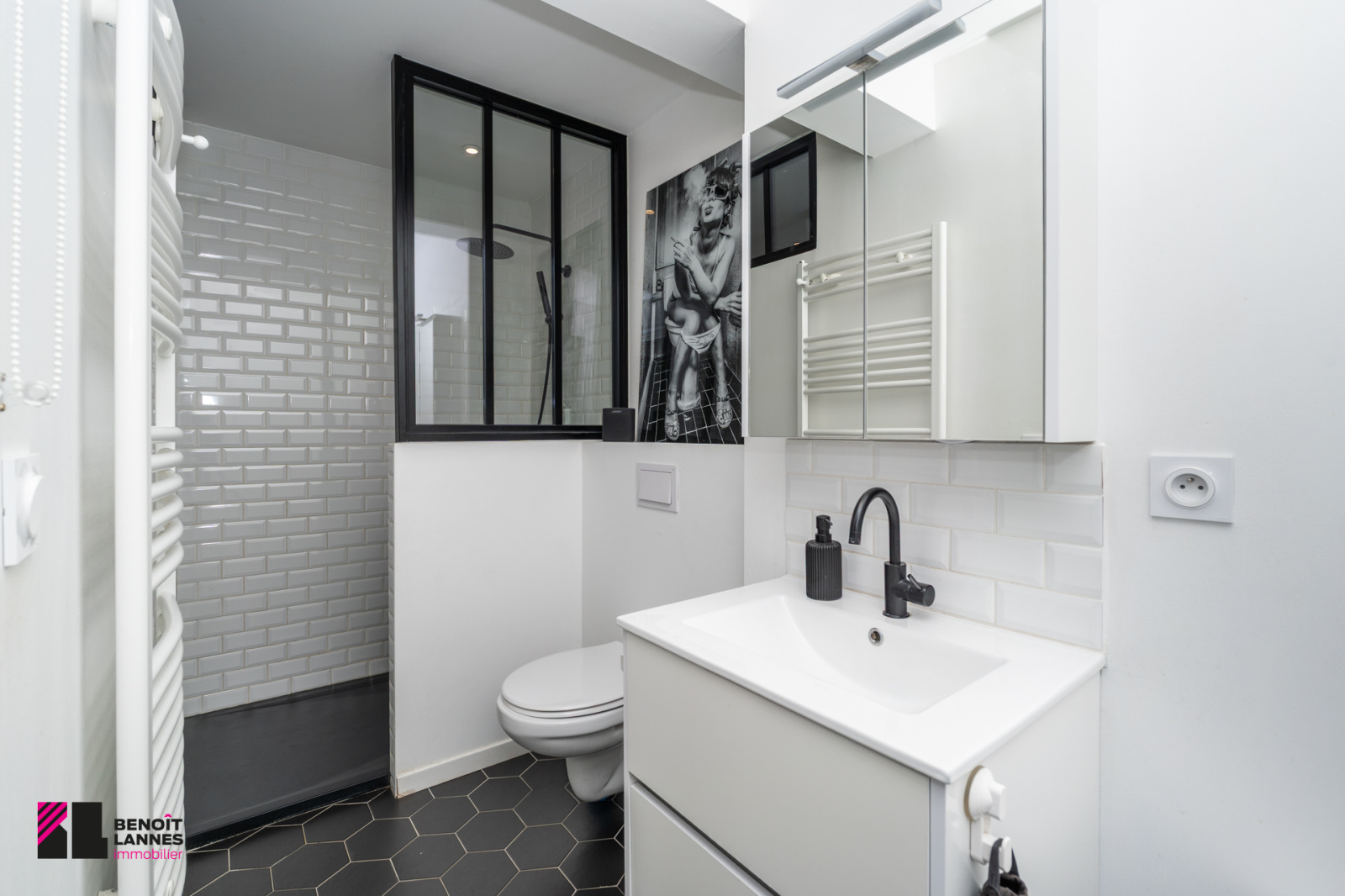 Vous serez séduit par la qualité de ses prestations et sa luminosité. Cuisine équipée et meublée, salon avec meubles intégrés sur mesure, salle de bain avec douche à l’italienne et baignoire, menuiserie en double vitrage avec volets roulant électrique…