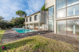 Vous serez séduit par son exposition sud et sa luminosité avec son pan de mur vitré. La terrasse, le jardin paysagé, la piscine et sa vue sont les atouts de cette villa.