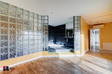 Une chambre parentale de 29 m² avec salle de bains (meuble vasque, douche et baignoire) climatisée et sa terrasse donnant accès au jardin.
