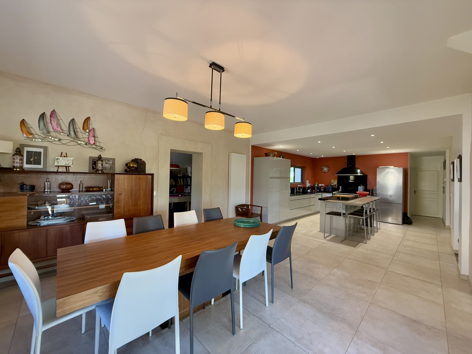 Un espace de vie de 76.27m2: salon/salle à manger et cuisine avec cheminée bi-face
